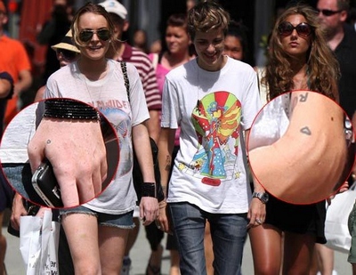 林赛·罗韩可能不会过多评论她与同伴DJ萨曼莎·罗森的关系,但她让自己的纹身来说明一切。这两个女孩被拍到右手有类似的心形刺纹。2006年,罗韩拇指旁有一个白心,当时她正与哈里·默顿约会,现在这一刺纹的轮廓成为了黑色,和罗森拇指旁的黑色心形刺纹相呼相应。罗韩的手上还有一颗新的红星星,而罗森的前臂上也有一系列红星星。