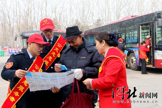 日前,沧州市“文明你我他,和谐靠大家”社会公德宣传和优质服务暨学雷锋活动全面启动。图为志愿者在沧州公交公司西客站为市民指引公交乘车线路。 戴绍志、陈雷摄