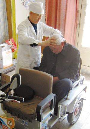 ■李学增上门为75岁朱增老人治疗。通讯员何洪泽摄