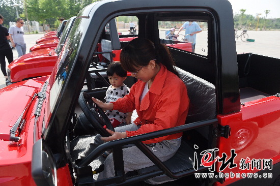 5月20日,位于南宫市经济开发区的河北开云汽车制造有限公司举行百辆新能源电动车下线交车仪式,市民在体验电动皮卡车。河北开云电动汽车制造项目由中瑞德科(北京)工业设计有限公司投资21.6亿元建设,重点工位全部采用工业机器人操作,全线自动化率达75%以上。项目全部建成后,具备年产60万辆电动车整车组装能力,预计年销售收入100亿元。河北日报记者赵永辉摄