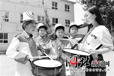 爱心单位为千根小学送来了崭新的乐器,千根小学特岗教师教孩子们学用乐器,成立少先队乐队