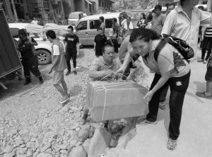 昨日17时许,安平网商会的15辆物资车来到贵泉村,将爱心物资送给了村民。商会会长、石家庄奥非特医疗器械有限公司总经理李肖静说,通过本报近段时间的连续报道,她对井陉县南峪镇重灾村的情况有了详细的了解。得知本报正在组织对受灾村民的捐助后,李肖静立刻组织员工在公司和商会中进行募捐,两天时间,李肖静募集善款7万余元,全部用于购买救灾物资。昨日一天,李肖静带领志愿者们先后赶到南峪镇多个受灾村,将救灾物资分别送到急需的村民手中,其中贵泉村则是物资运送的主要村庄,“希望我们的爱心能够为灾区的重建提供帮助,只要他们需要,我们还会继续送物资进去!”