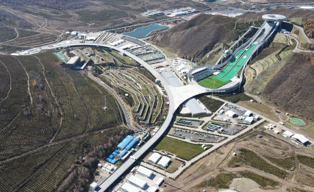 这是10月26日拍摄的国家跳台滑雪中心“雪如意”(无人机照片)。新华每日电讯记者金皓原摄