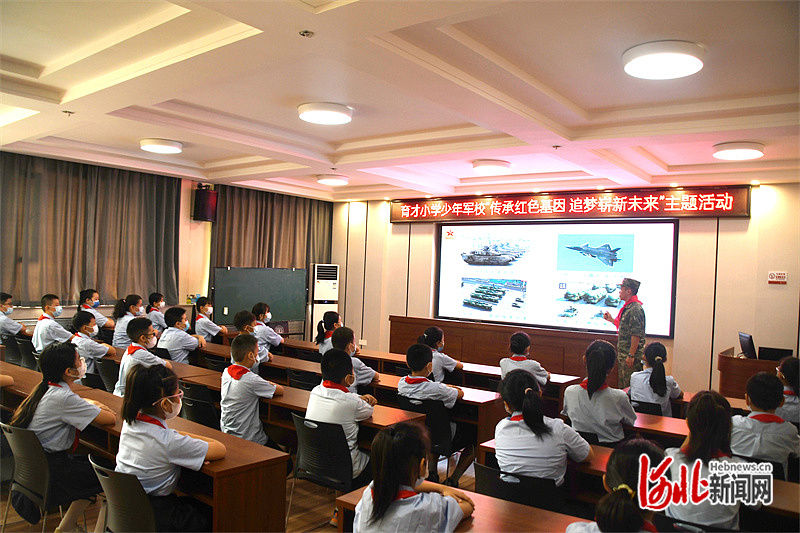 在课堂上,指导员通过PPT和视频等方式向同学们介绍了歼20、航母、坦克、导弹等先进武器装备在维护国家安全中发挥的重要作用。课下,又和学生们进行了互动交流,解答了学生们的提问,告诉孩子们有了先进装备,还要有强烈的爱国情感,要在行动上听党指挥。学校少年军校辅导员说,邢台市育才小学一直秉承红色基因传承,以少年军校为活动阵地,开展丰富多彩的国防教育活动,根植红色家国情怀。