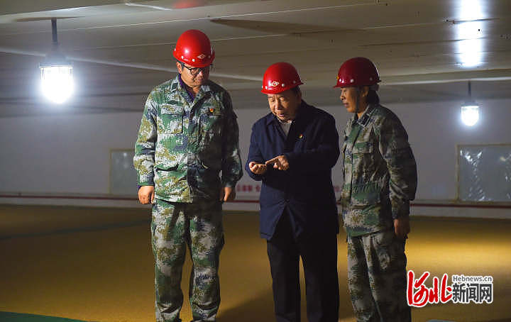 近日,河北柏粮粮食储备有限公司绿色储粮课题研究组组长尚金锁(中),在试验仓和工作人员研究小麦低温绿色保鲜储存技术。