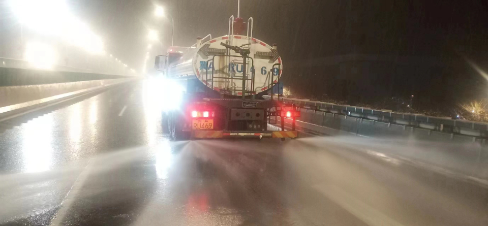 石家庄城管部门及时布洒融雪剂,目前主城区道路无结冰