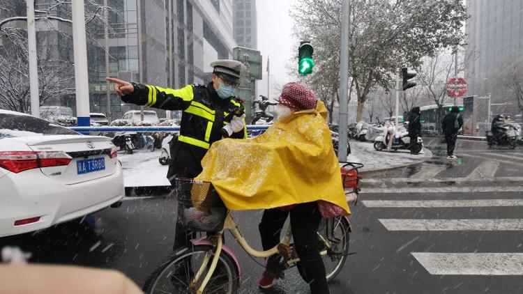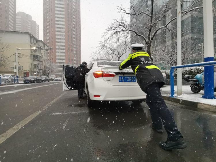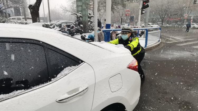邯郸交巡警闻雪而动护航群众安全出行