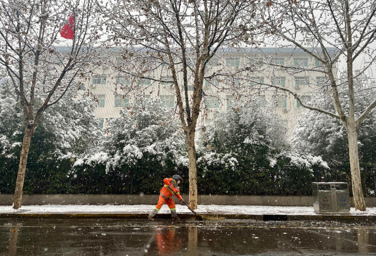 2月9日,张家口市迎来降雪,经开区环卫工人开展清雪作业。河北日报通讯员毕瑞翔摄