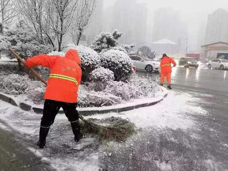 笔者在经开区走访看到,机关干部、志愿者,以雪为令迅速集结,挥舞着铁锹、扫帚,配合环卫工人、城管人员,清扫积雪路段。据了解,截止到今日12时,经开区出动清扫人员1029人次,清运车辆6台,清雪21立方,撒布机9台、双黄线吹雪车2台、雪滚车8台、铲板除雪车5台、装载机3台、自卸车2台,小型便道吹雪机12台、机械化清扫面积168.73万平方米,人工清扫面积7.19万平方米。在其他县区,各重点区域、主次干道的积雪,清扫作业同步展开,为群众扫出一条条“安全之路、暖心之路”。