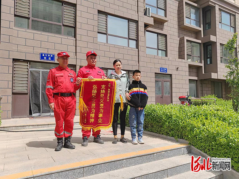 4月21日上午11时许,被救人家属吕瑞宁带着被救的儿子,专门到玉田县绿城救援队送去锦旗,以表达感谢之情。她说:“邵帅和几位村民,在非常短的时间内把我的家人从河里救了上来,对他们这种见义勇为的义举,我非常敬佩,也非常感谢他们。将来,我希望我的儿子长大以后也会像他们一样 ,参与更多的社会公益事业,帮助更多的人!”