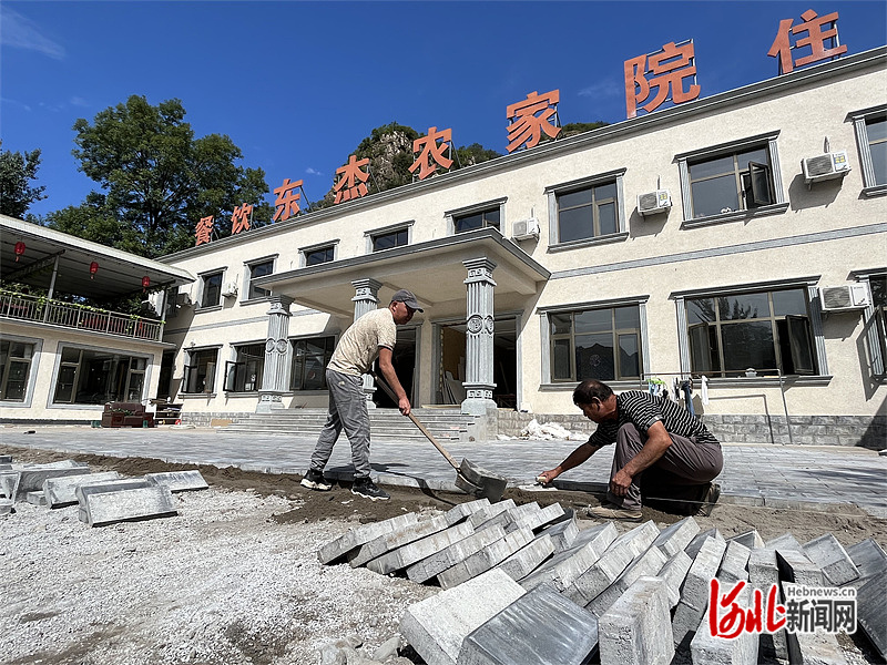 9月29日,时值中秋佳节,在涞水县三坡镇紫石口村东杰农家院,正是一派忙碌景象:61岁的刘占海正带着两个儿子刘佃东、刘佃杰修整庭院,用砖石铺的地面基本完工。