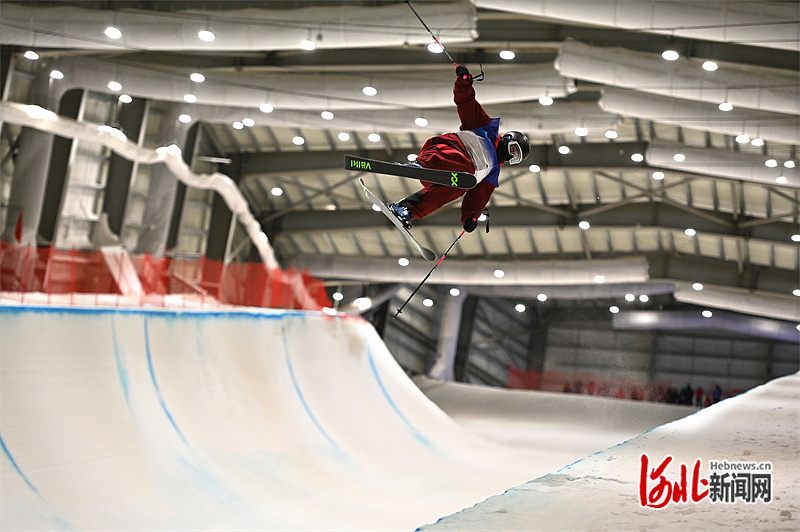 11月17日,盛海鹏在2023—2024赛季全国自由式滑雪U型场地技巧青少年锦标赛上。河北日报记者 王伟宏摄