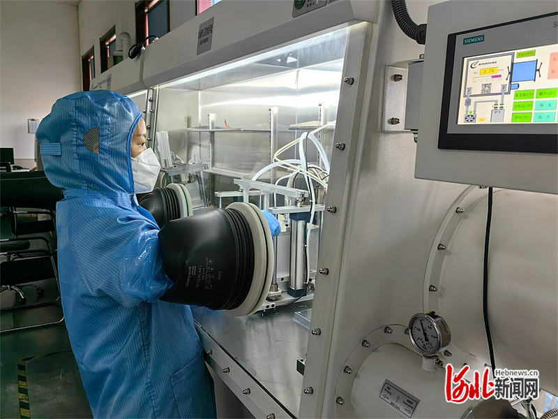 4月13日,在河北坤天新能源股份有限公司检测中心,工作人员正在进行产品检测。河北日报记者周洁摄