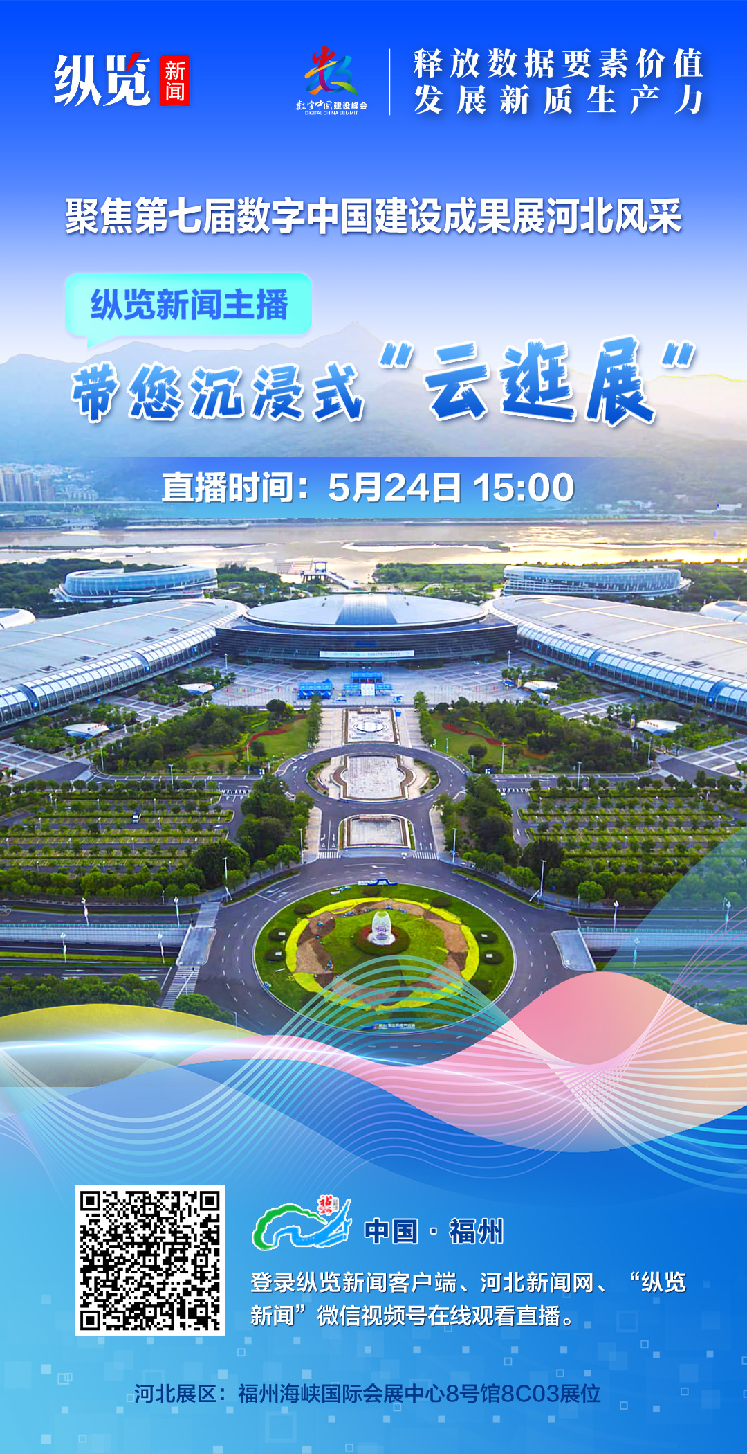 5月24日15时,纵览新闻主播带您沉浸式“云逛”河北展区,一睹“数字河北”风采,纵览新闻客户端、河北新闻网、“纵览新闻”微信视频号将同步直播,敬请期待。